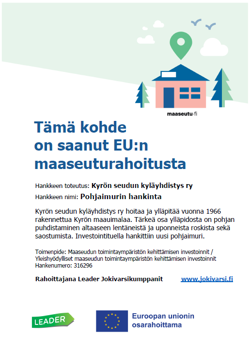Kyrön Seudun Kyläyhdistys perustettiin (perustamiskokous 10.12.2013) herättämään uudelleen henkiin Kyrön vanha maauimala. Tässä onnistuttiin, ja avajaisia vietettiin kesällä 2016!